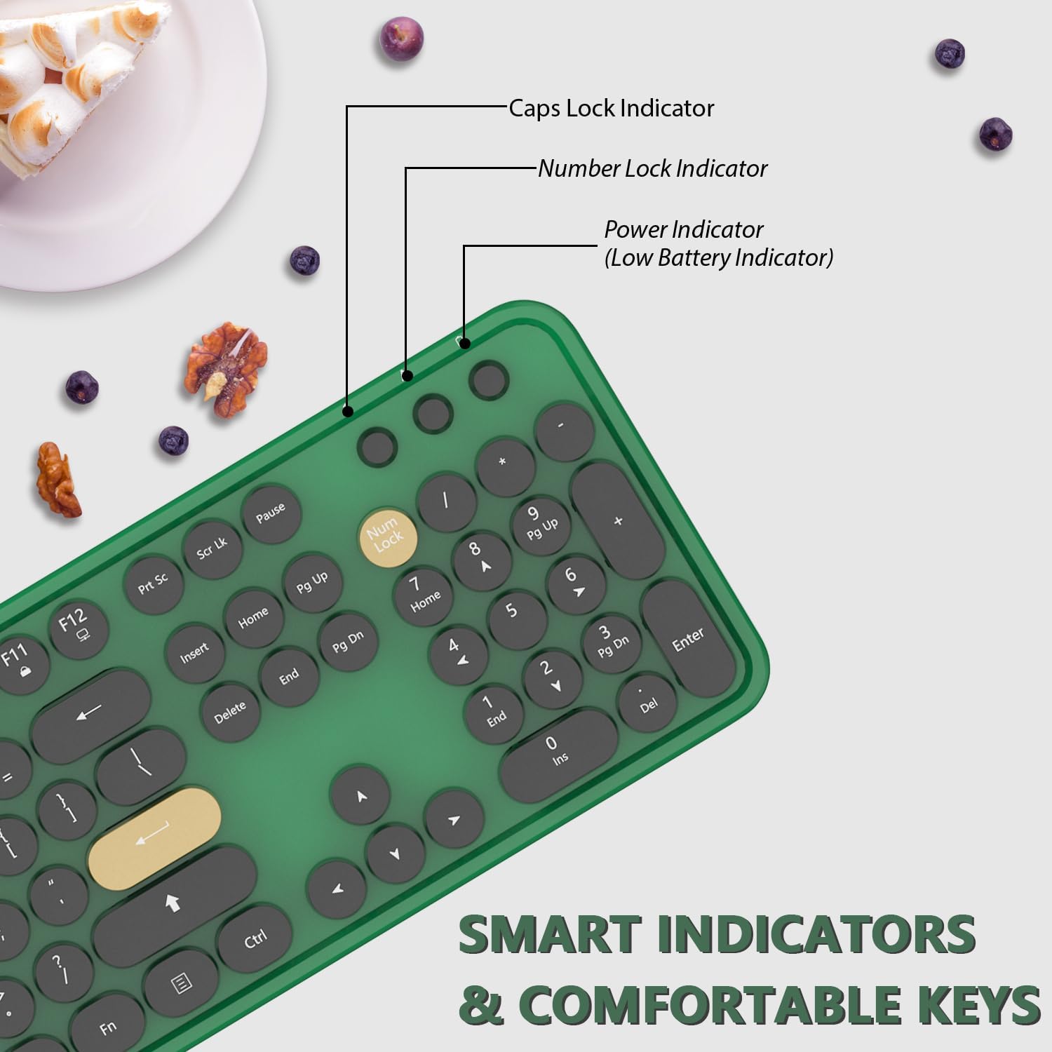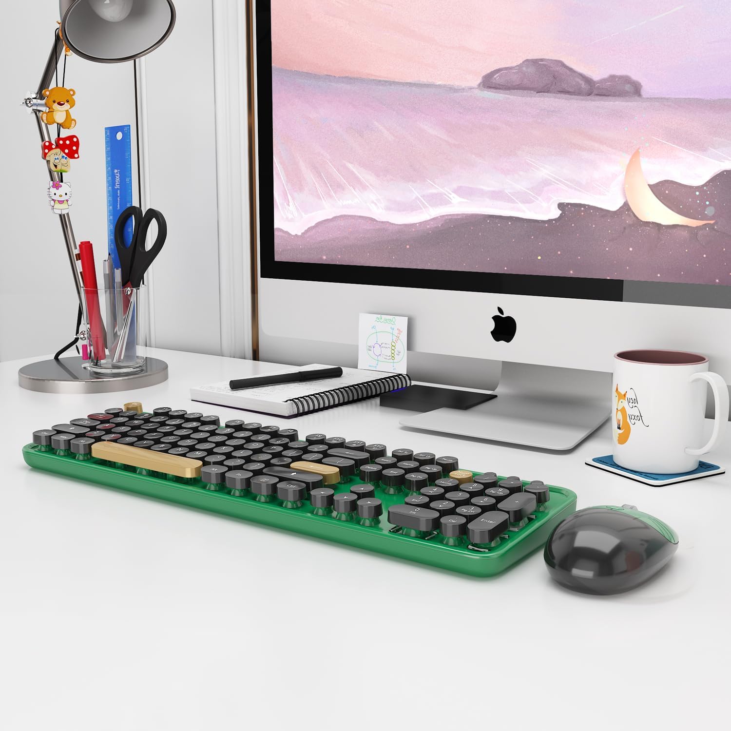 Wireless Keyboard,KOOTOP Cute Colorful 104 Keys Typewriter Retro Round Keycaps Keyboard for PC Laptop,Desktop,Windows, Home and Office Keyboards (Black Green)
