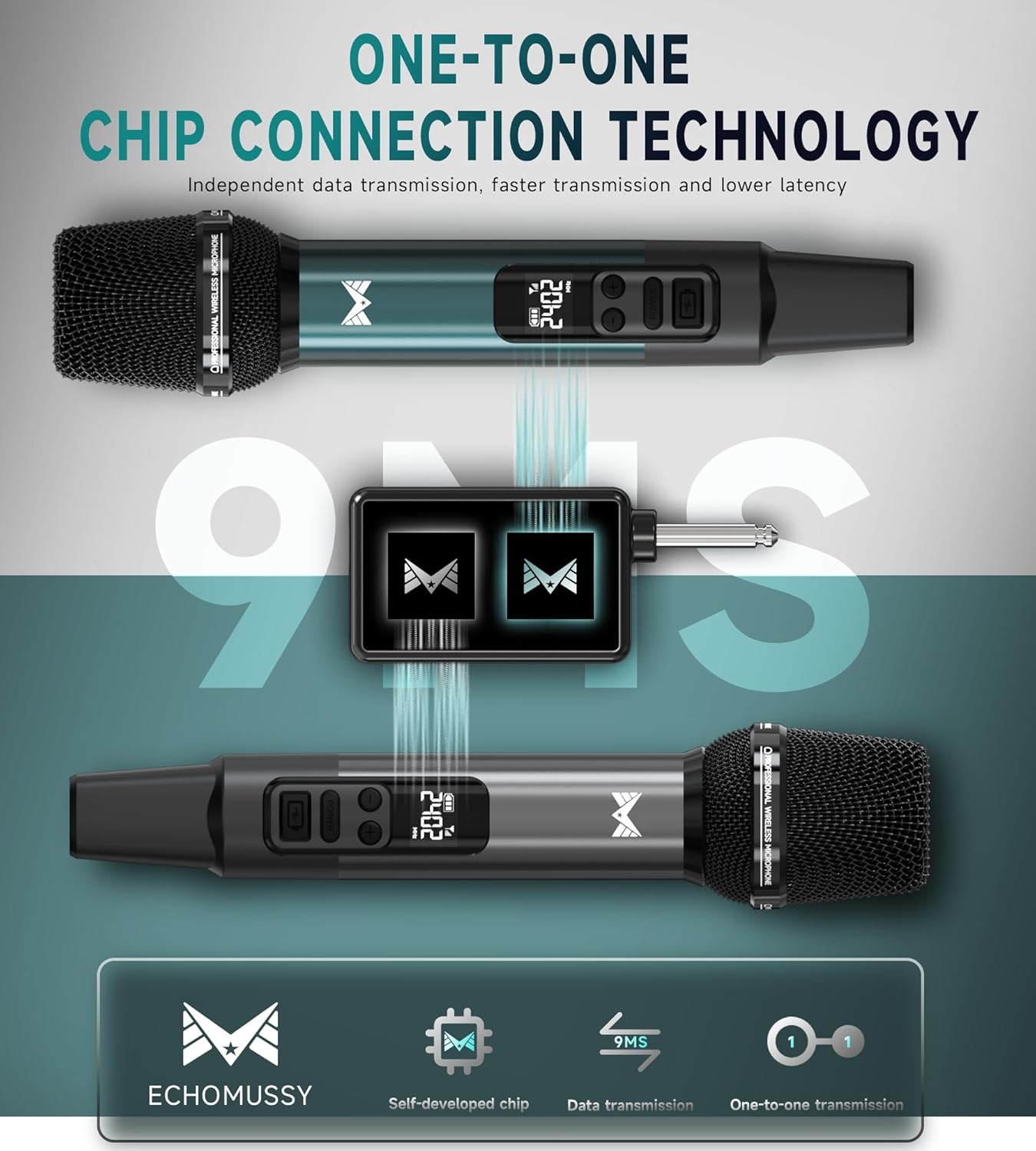 【True Wireless】This ECHOMUSSY wireless microphone system delivers crystal-clear, studio-quality audio. With a 200ft (60m) effective range, it maintains seamless connectivity even in large venues, ideal for karaoke parties, stage performances, and conference settings.