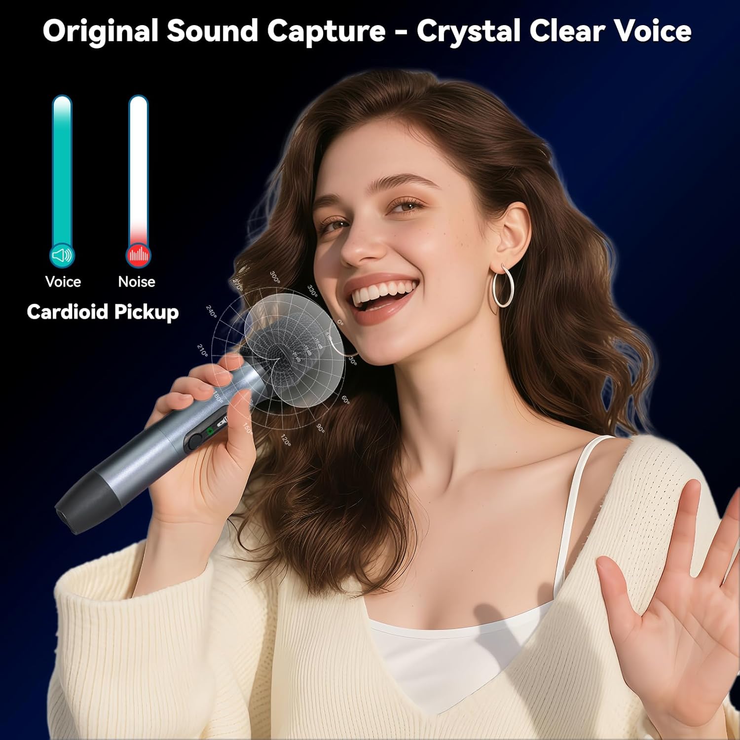【Premium Construction】The wireless microphone is elegantly constructed from anodized aluminum, ensuring scratch resistance and durability with a refined, non-slip finish. Its streamlined, curved design enhances grip comfort, delivering a luxurious and sophisticated feel for an exceptional performance experience.