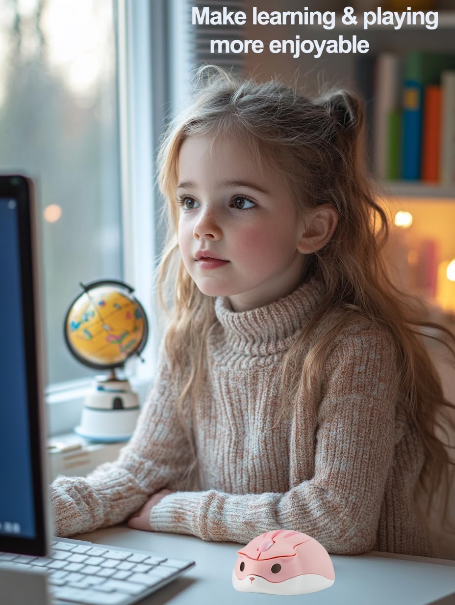 【Cute Mouse with Bluetooth Connection】This cute bluetooth mouse compatible with PCs, MacBook,iMac,Windows, Android, Linux, iPhone, iPad,Mac OS.Do not occupy any usb ports or usb c ports,easy to use.with novelty cool cute hamster shape design,this bluetooth mouse for laptop gives you a vibrant look to create your personal desk setup, add fun to the typing process. Kids will be more willing to learn online lessons with this cute wireless mouse.Perfect for work and entertainment in home or office