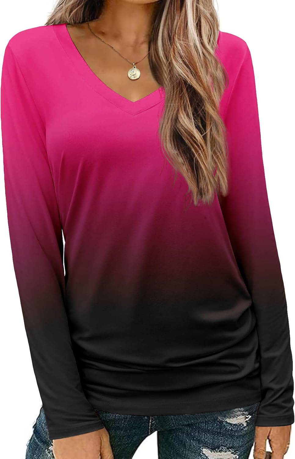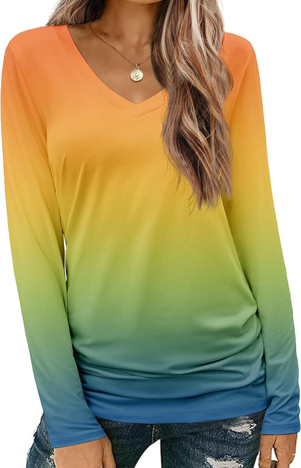 Elevate your early fall wardrobe with a blend of dreamy gradient charm and cloud-like comfort. Our Women’s Long Sleeve Gradient V-Neck Pullover reimagines casual tops, merging soft wearability with on-trend gradient hues that make a statement from crisp autumn days to mild spring afternoons.