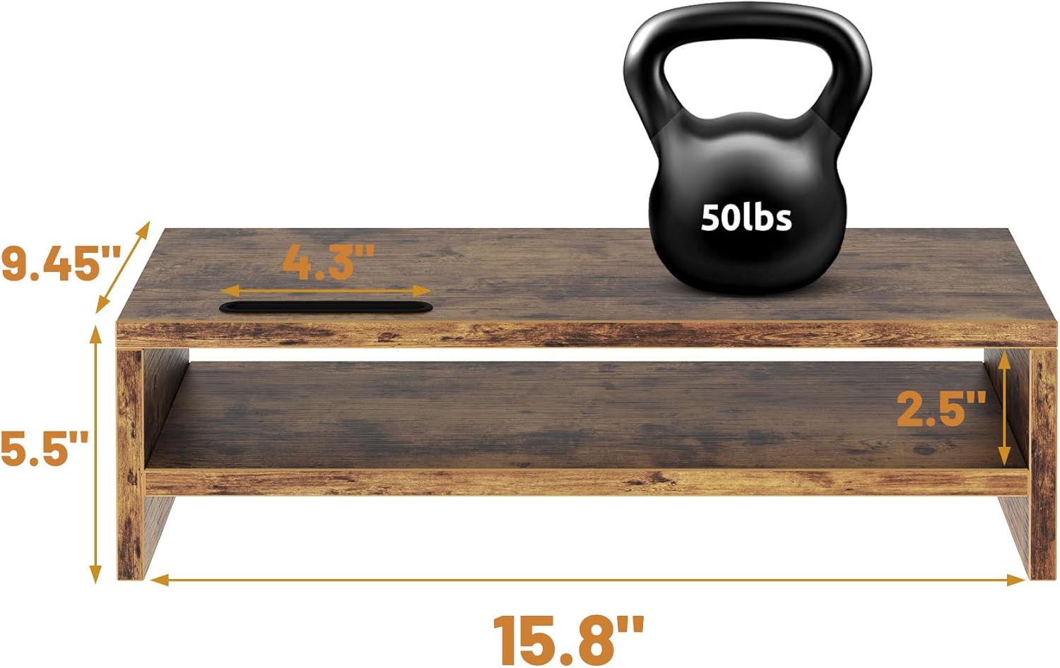 【Size & Weight Capacity & Multifunctional】 Computer monitor stand’s size is 15.8 “L X 9.45 “W X 5.5 “H (40 X 24 X 14 CM). Weight Capacity :50 Lbs. Computer desk organizer can be used in your office, living room, bedroom, study, classroom and conference room. Multifunctional desktop stand can be used as a computer/laptop/screen/TV/printer/fax machine stand