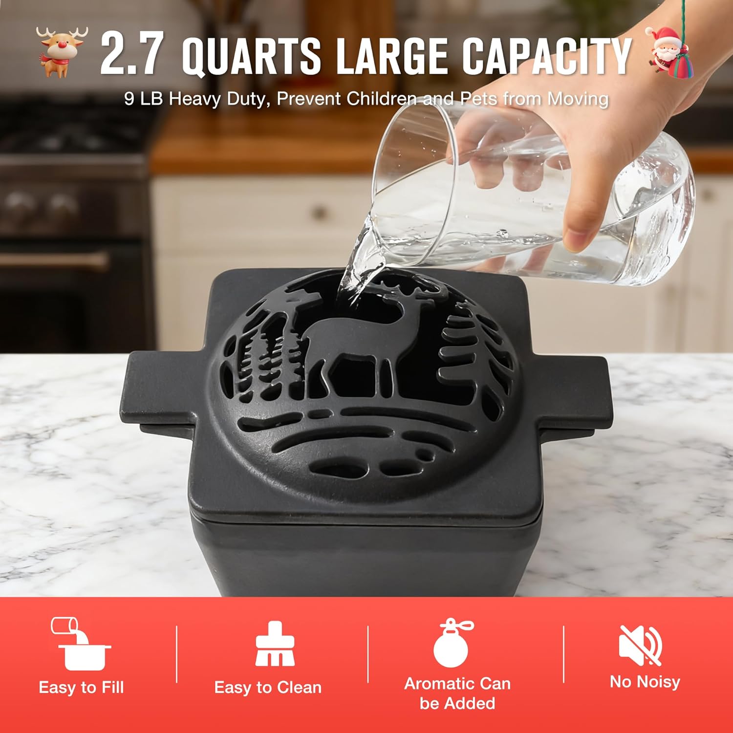 【Large Capacity & Long-Lasting Humidification】Generous 2.7 quart capacity reduces the need for frequent refills. The top-fill design with a removable lid often with a convenient hollow opening allows for easy water addition even while the stove is hot. Simply place it on your wood stove, and as the temperature rises, it will produce steam to quickly increase indoor humidity levels.