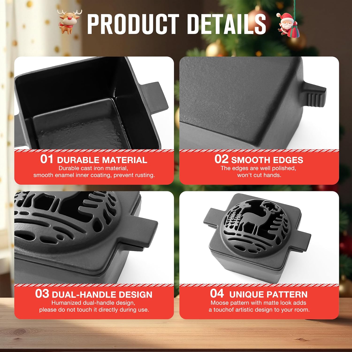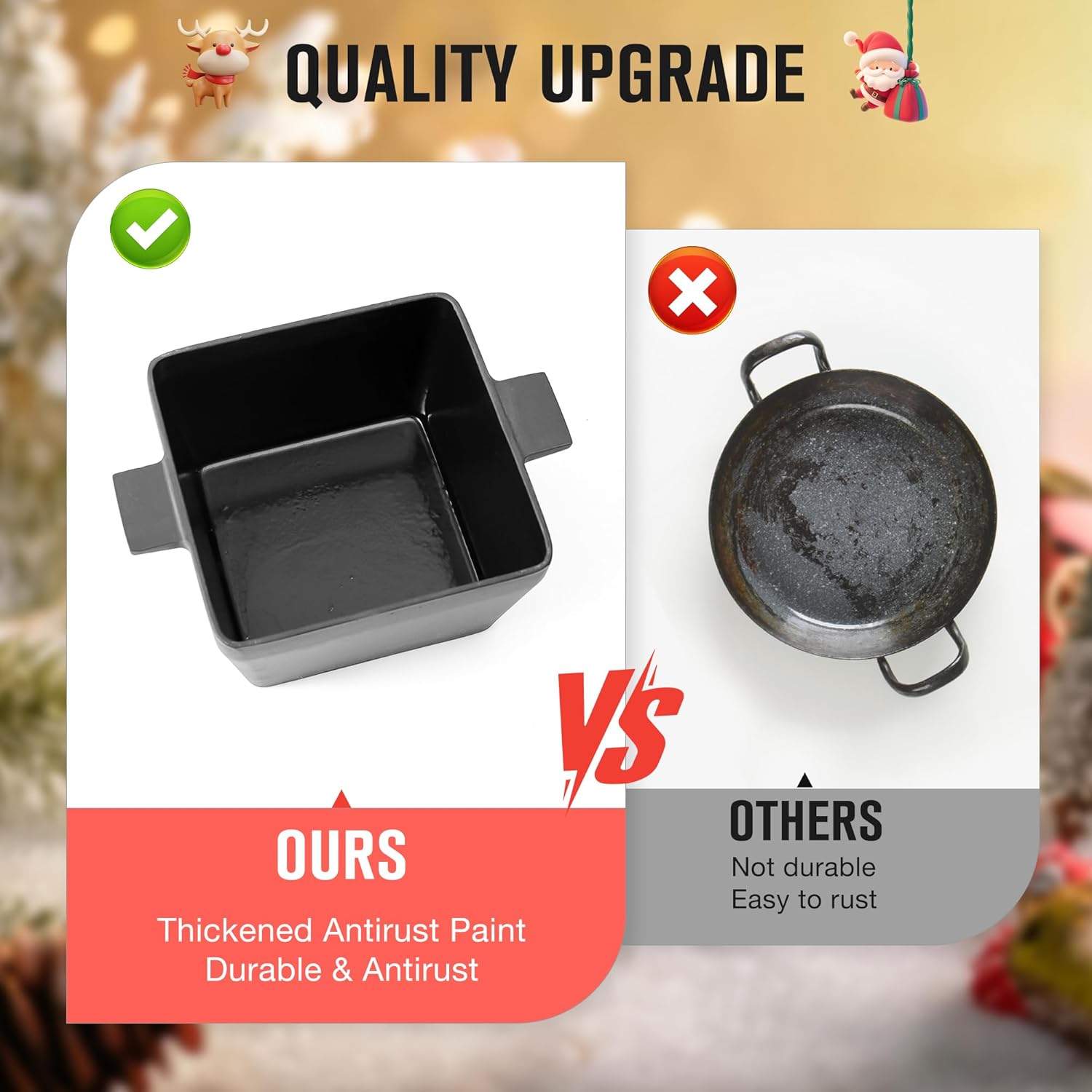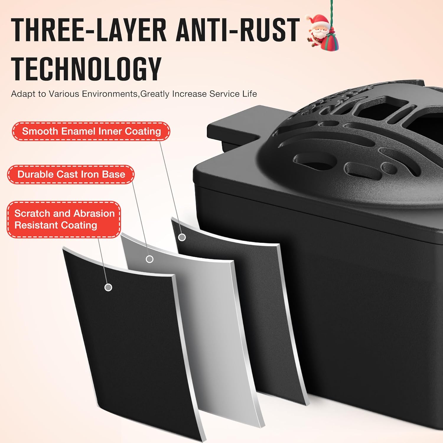 【Durable Cast Iron Material】Crafted from heavy-duty cast iron 10 lbs with an enamel inner coating to prevent fading or peeling. It retains heat excellently and withstands high stove temperatures, ensuring long-lasting use.