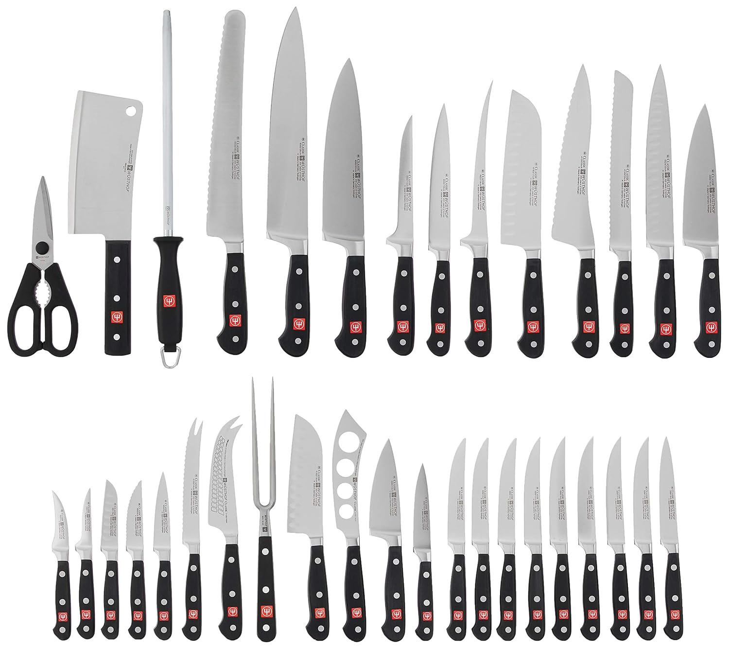 WÜSTHOF CLASSIC SERIES – 36-Piece deluxe knife set with full tang triple riveted synthetic polypropylene handles that resist fading, discoloration, heat and impact. The WÜSTHOF Classic Series has been our best-selling series for generations.