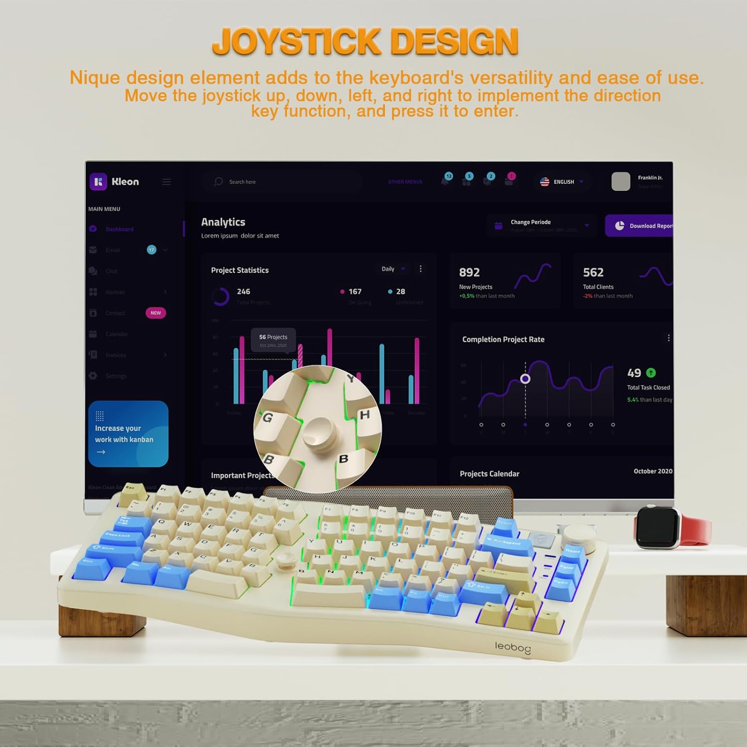 Alice Layout Mechanical Keyboard: The Leobog Alice A75 wireless mechanical gaming keyboard is a versatile and stylish input device designed for gamers, office workers, and keyboard enthusiasts alike.This keyboard offers a unique blend of ergonomic and joystick design, advanced mechanical features, and seamless connectivity options.With its 75% layout size, functional knob, and tri-mode connectivity, the Alice A75 ensures a comfortable and efficient typing experience.The keyboard is equipped with a 4000mAh battery, RGB backlit, and hot-swappable switches