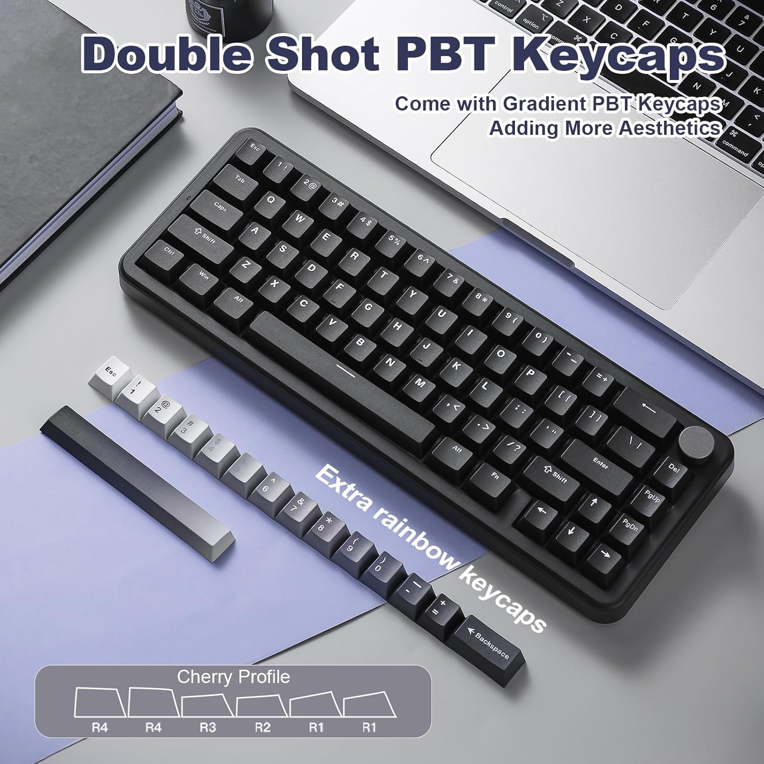 RGB Backlighting & Rainbow PBT Keycaps:Brighten up your workspace with the B68’s colorful RGB backlighting and south-facing LEDs. This rainbow keyboard also includes durable double-shot PBT keycaps, along with additional gradient rainbow keycaps, allowing you to personalize your setup to match your aesthetic keyboard style. Beyond the built-in lighting presets, you can further customize the keyboard’s functions and RGB settings through the software, giving you complete control over this custom keyboard