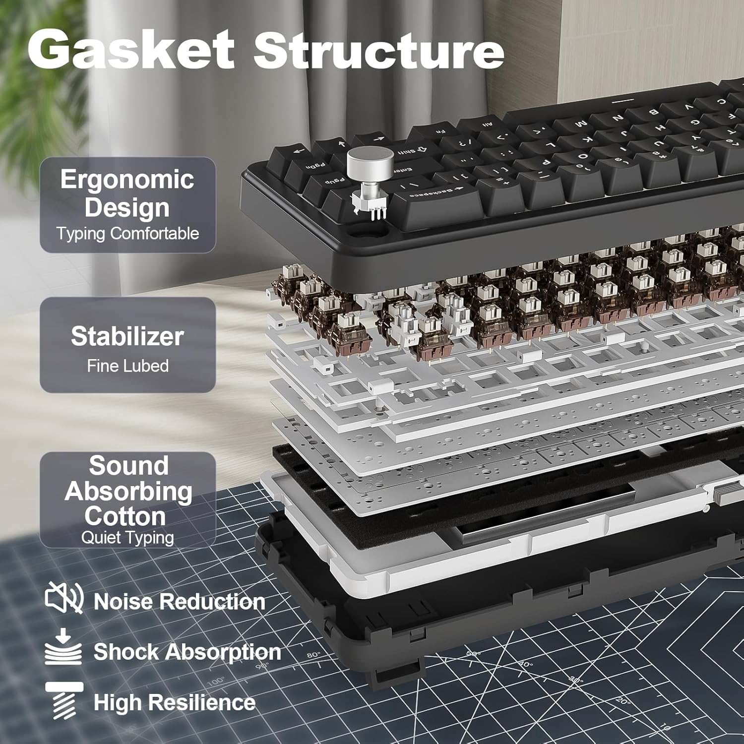 Gasket Mount Design with Five-Layer Padding:Experience a quieter and smoother typing experience with the B68 creamy keyboard’s precision gasket mount structure, featuring five layers of sound-absorbing padding. The inclusion of PE sandwich foam, IXPE switch pad, PET sound foam, switch foam, and a silicone button pad ensures reduced noise and vibration. Paired with pre-lubricated mechanical switches, this creamy sounding keyboard offers a soft and fluid typing feel, great for those who appreciate an ASMR keyboard experience