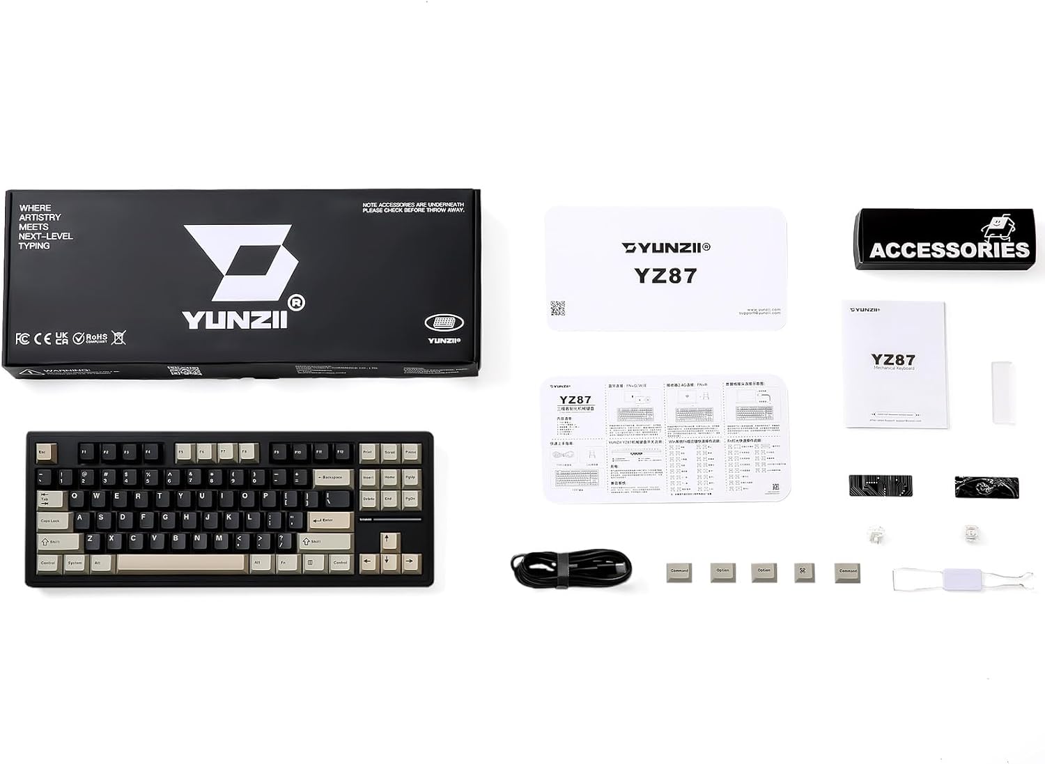 87 Key TKL Mechanical Keyboard: YUNZII YZ87 75% percent keyboard Ultra-portable compact ten keyless design make more table space for mouse movement.YZ87 features gasket structure,with five layers of filling silencer and PORON gaskets filling the gap between the PCB,positioning plate, and mechanical switches,the 87 key TKL mechanical keyboard is flexible and firm by reducing hollow sound and fatigue,It’s the ideal choice for a satisfying,low-noise typing experience, whether in an office or gaming environment