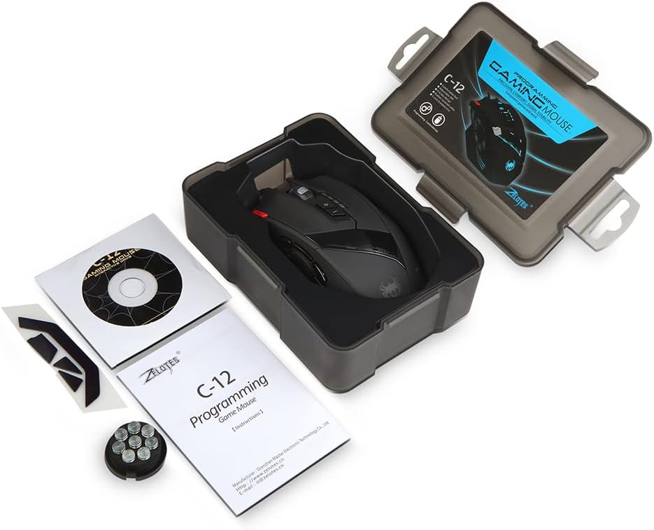zelotes Professiona Wired Gaming Mouse,4800 DPI,12 Programmable Buttons,Weight Tuning,High Precision,Multi-Modes Backlit,Ergonomic Design,USB Optical Mouse Mice for Laptop,PC,Mac,Black