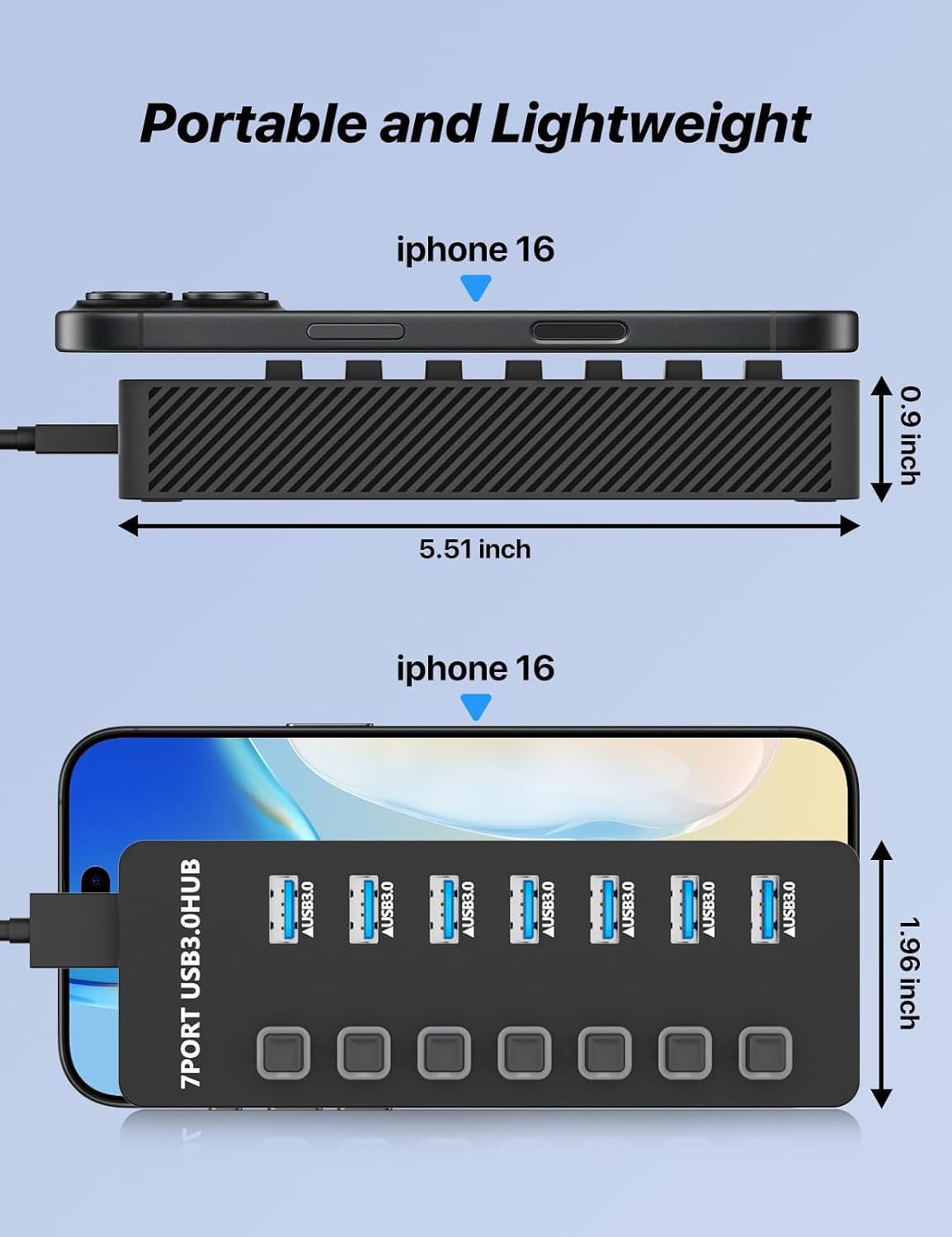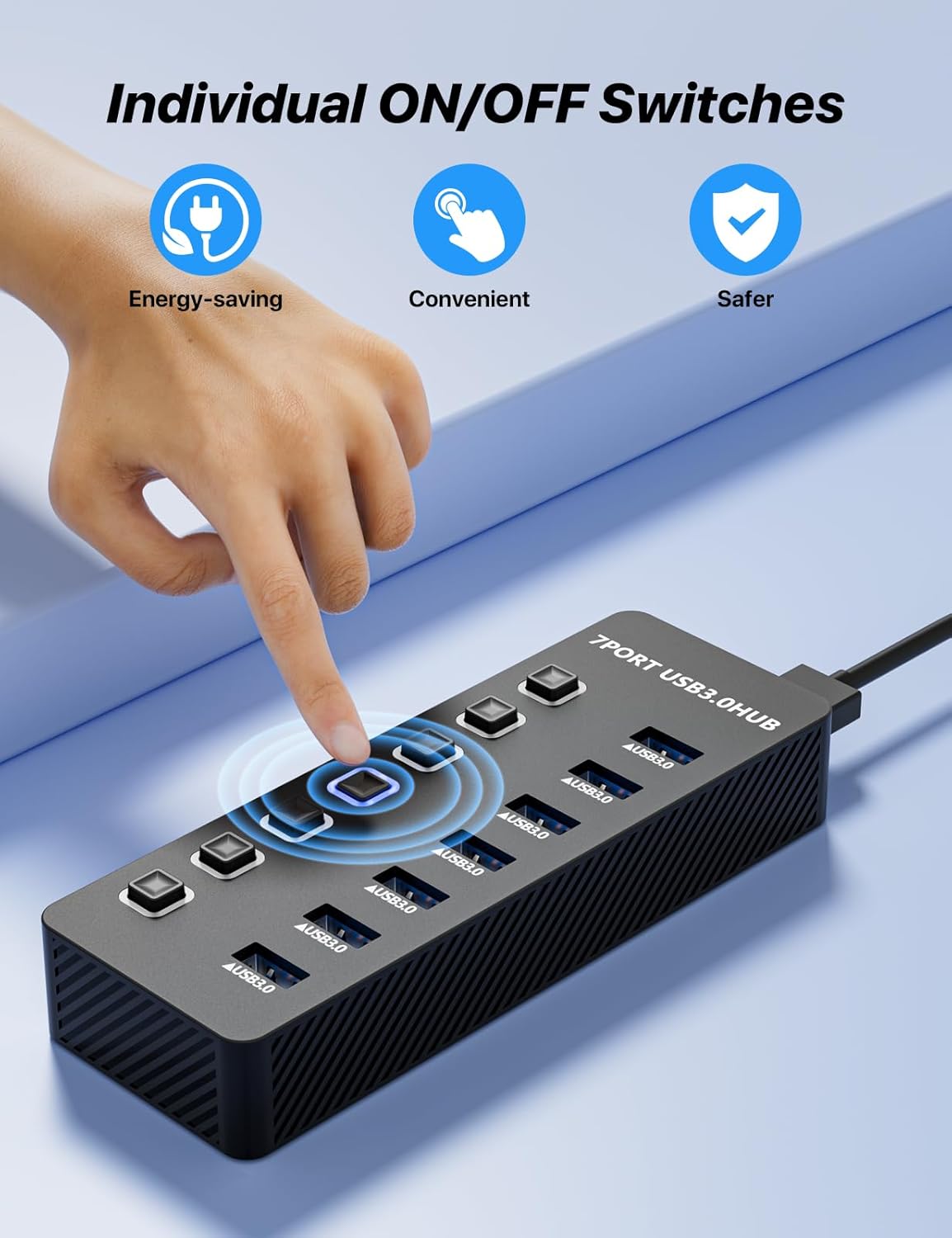 【3.3 ft Cables】Ziumier 7 ports USB hub comes with a 100cm (3.3ft) USB cable and enough length to let you arrange your cables anywhere.The Usb hub is a good ideal data backup and transmission solution for home and office.