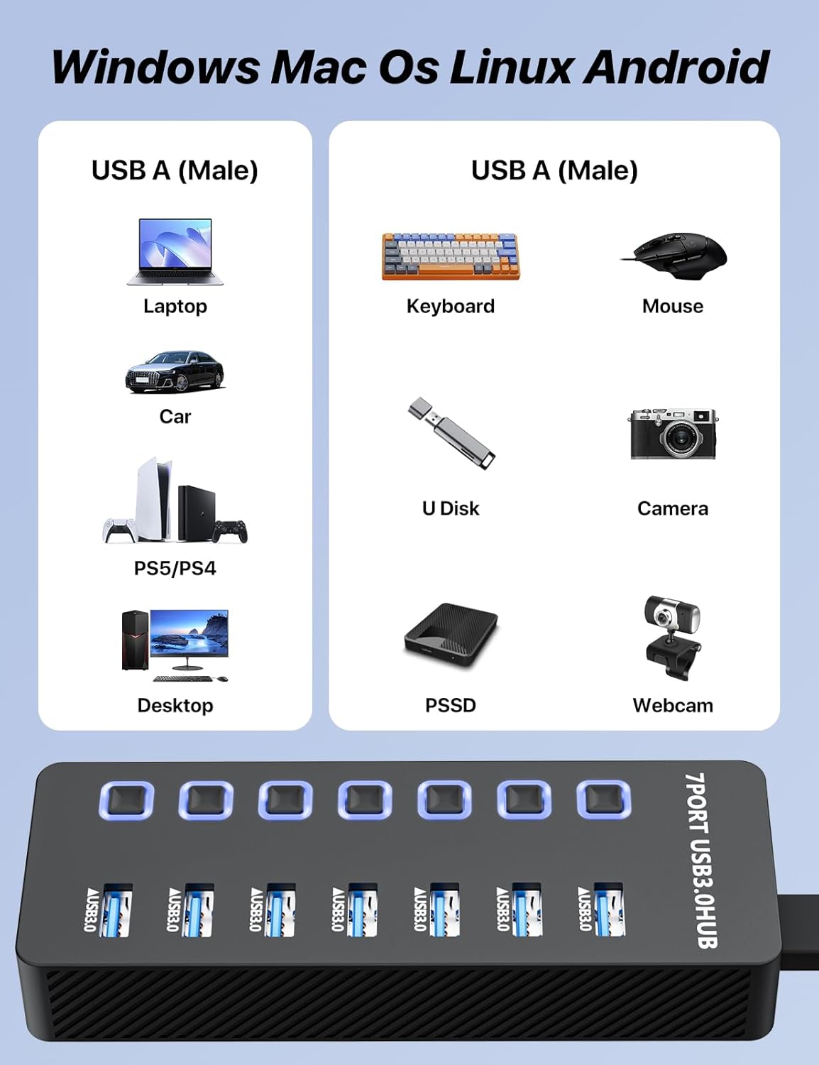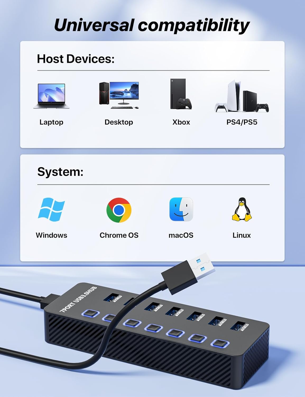 【Wide Compatibility】: Ziumier USB 3.0 Hub is compatible with Windows XP / Vista / Win 7 / Win 8 / Win 10,Win 11, Mac OS, Linux 9 and above, supports any USB 3.0, USB 2.0, USB 1.1 and USB 1.0 peripherals; Fully plug and play, no drivers required and supports hot-swapping.