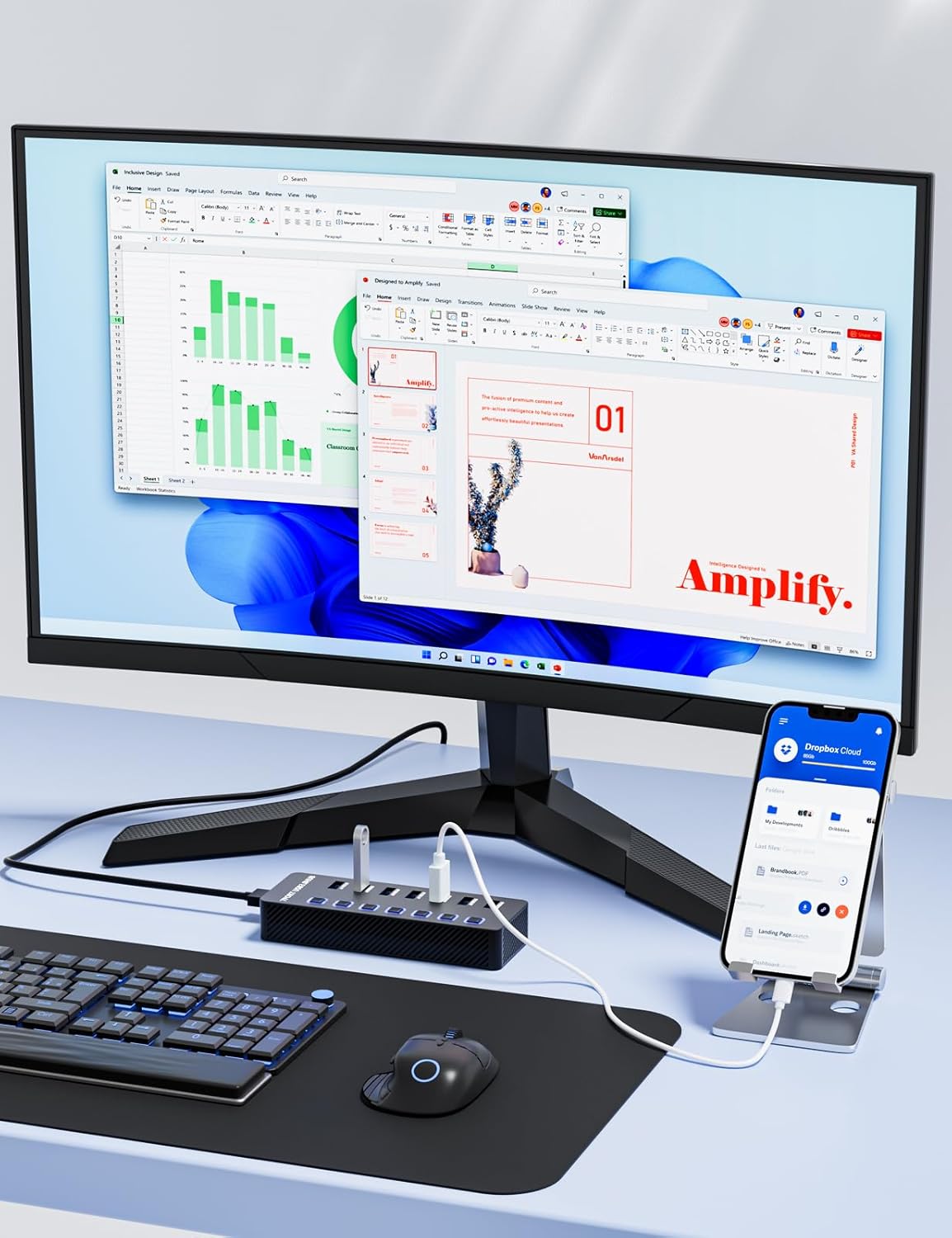 【5Gbps Data Transfer Speed】The hub facilitates data transfer rates up to 5 Gbps, achieving 10x throughput enhancement compared to USB 2.0 standards. This enhanced bandwidth significantly optimizes workflow efficiency for bulk file transfers and high-density data synchronization operations.