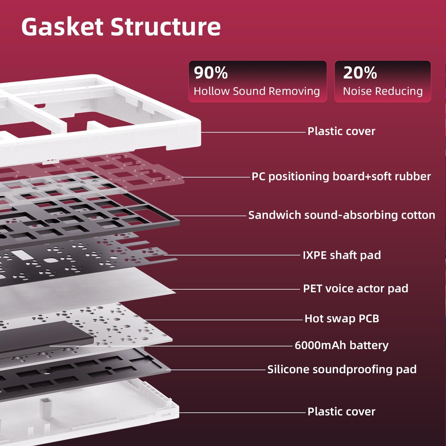 【22 RGB Modes with South-Facing & Side Lighting】With Transparent case,You can enjoy vivid RGB with 22 preset lighting effects, including side-glow and south-facing LEDs. Combined with OEM-profile keycaps and high transparency legends, the lighting looks clean, consistent, and immersive